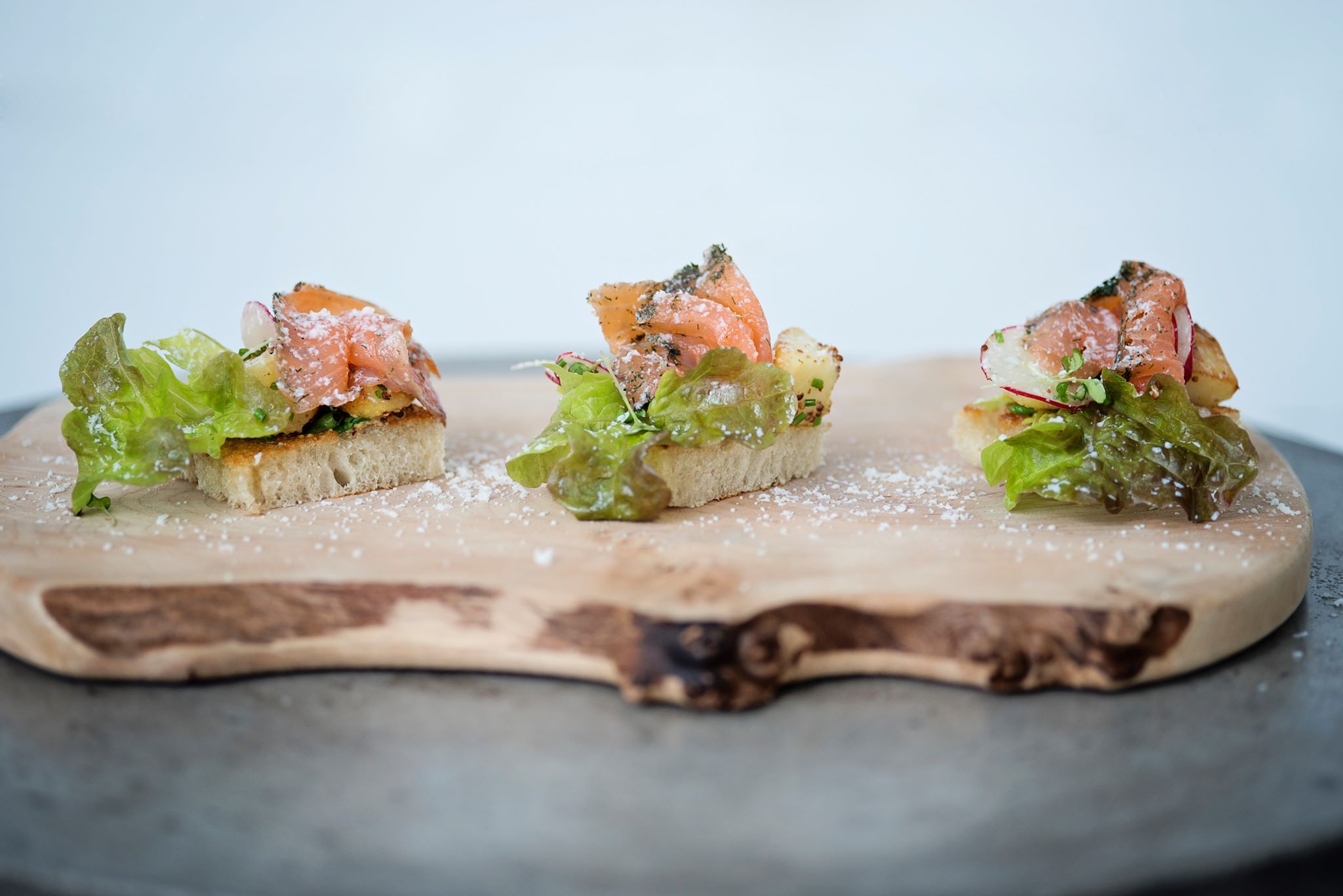 In Cognac marinierter Lachs, in Scheiben Der Produktionsprozess beginnt am selben Tag, an dem der Lachs aus dem Meer geholt wird. Der Fisch wird gehäutet und in eine Marinade aus Cognac, Salz, Zucker und Gewürzen. Der Lachs wird während des Prozesses ein paar Mal gewendet und es werden weitere Gewürze und Cognac hinzugefügt. Nach etwa einer Woche wird der Lachs vakuumverpackt und für den Kunden abgewogen.