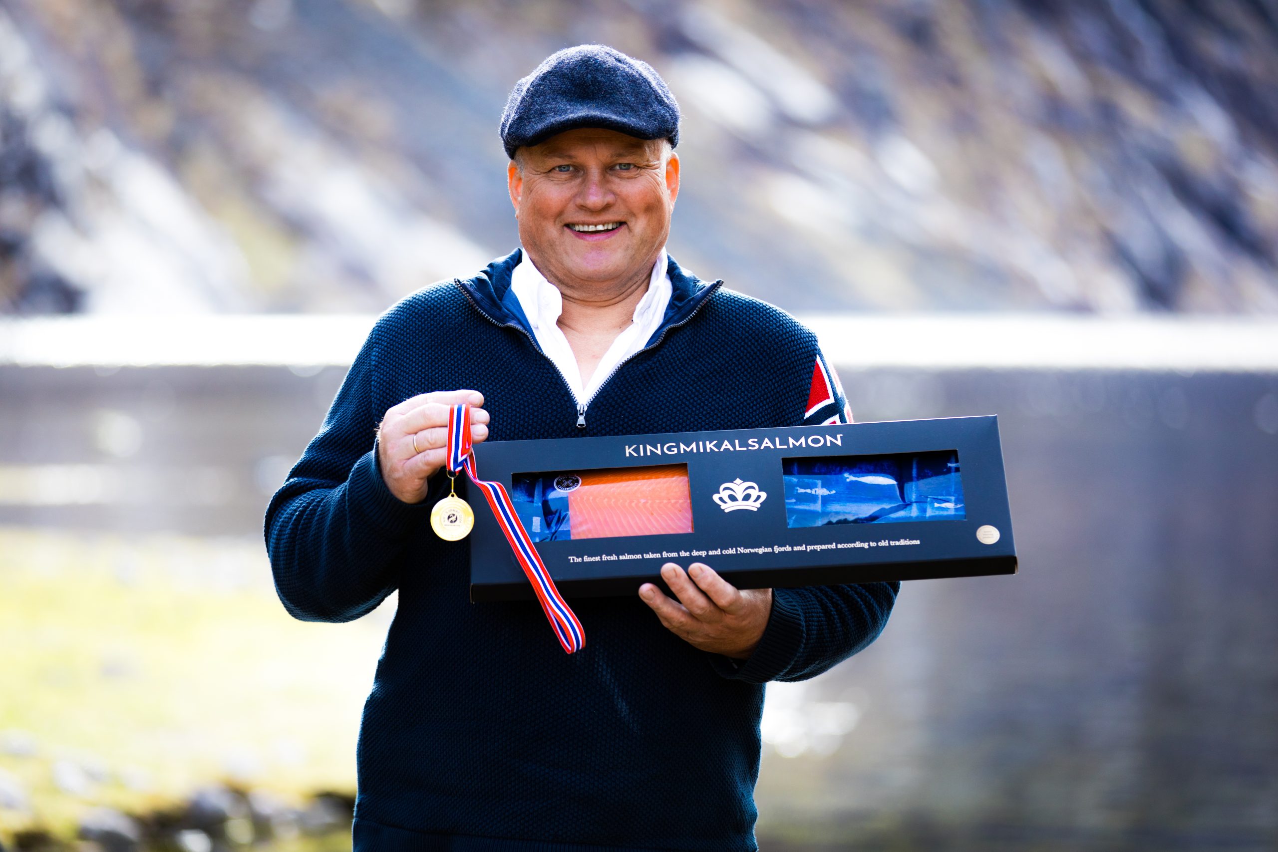Kalt geräucherter Lachs in Scheiben. Der Produktionsprozess beginnt am selben Tag, an dem der Lachs aus dem Meer geholt wird. Der Fisch wird trocken gesalzen, dann wird das Salz abgespült und das Filet getrocknet, bevor es mit Wacholder und Buchenspänen geräuchert wird. Nach einer neuen Trocknungszeit wird der Fisch vakuumverpackt, bevor er für den Kunden abgewogen wird.